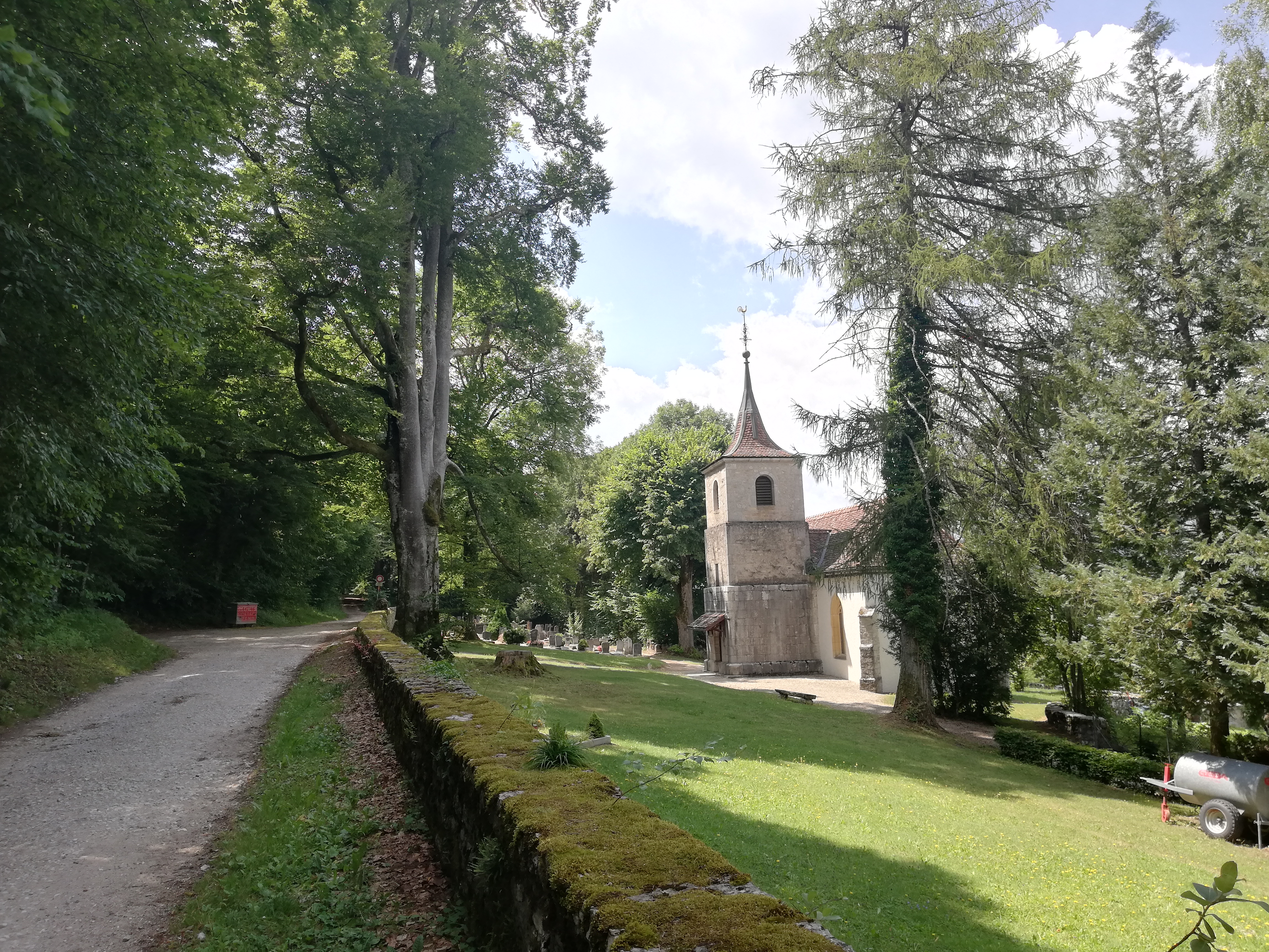 Von Chezard-St-Martin ging es weiter über schöne Feldwege quer durchs "Val de Ruz", durch verschiedene kleine Dörfchen bis ich zum Waldrand von Vilars gelangte. Hier begann ein schöner Waldweg und führte mich um den Mont Chaumont herum.