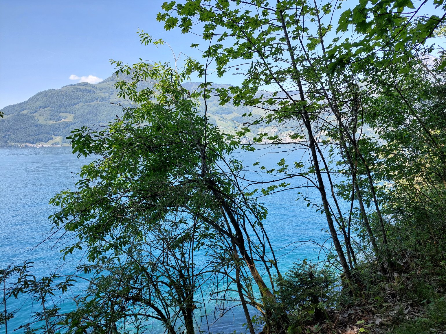 Die erste Strecke führte uns schön durch eine Wiesenlandschaft bis wir in Buochs ans Seeufer gelangen. Von da an wanderten wir mehr oder weniger am Ufer entlang. Die Sonne strahlte vom Himmel, die Aussicht war top.