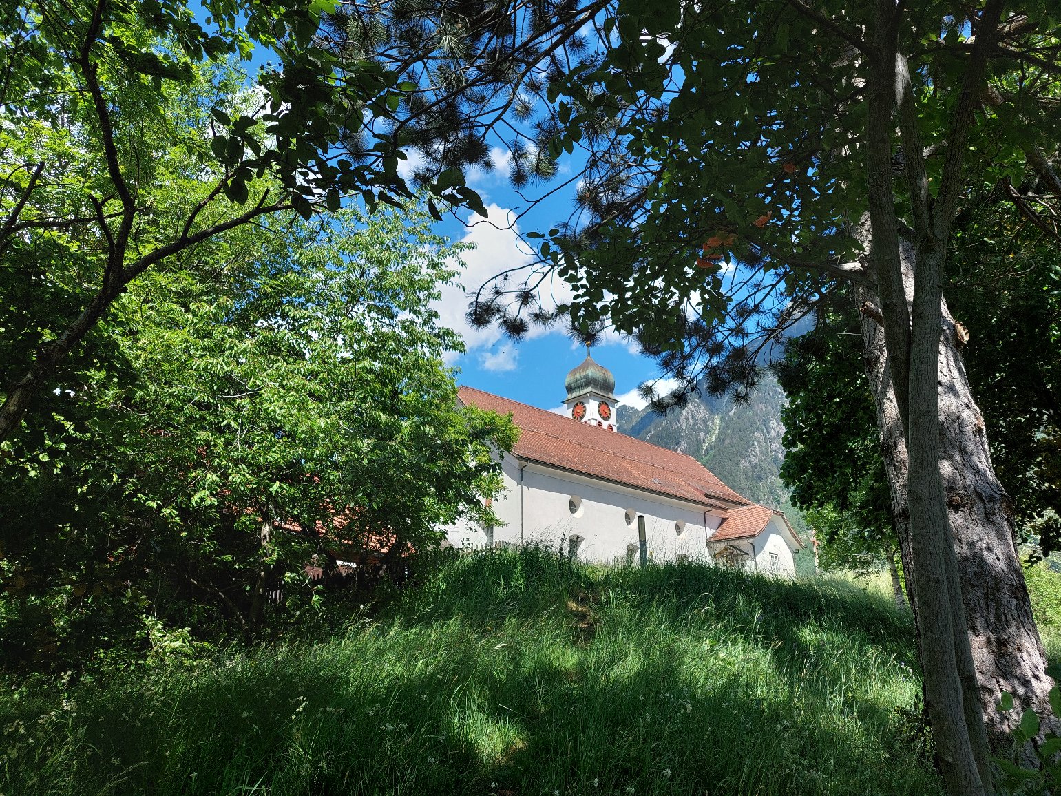 Weiter gings durch Wiesen und/oder Wanderwege. Die Steigung war jeweils kurz dafür "steil". Aber nicht so schlimm wie ursprünglich gedacht. Wir wandereten durch total schöne grüne Wiesen, links und rechts ragten Berge in die Höhe. Einfach traumhaft. Schon bald erreichten wir Amsteg. Ich ging davon aus, dass wir nun etwas durch Amsteg spazieren, der Weg zweigte allerdings schon rasch wieder nach links ab und führte erneut nach oben.