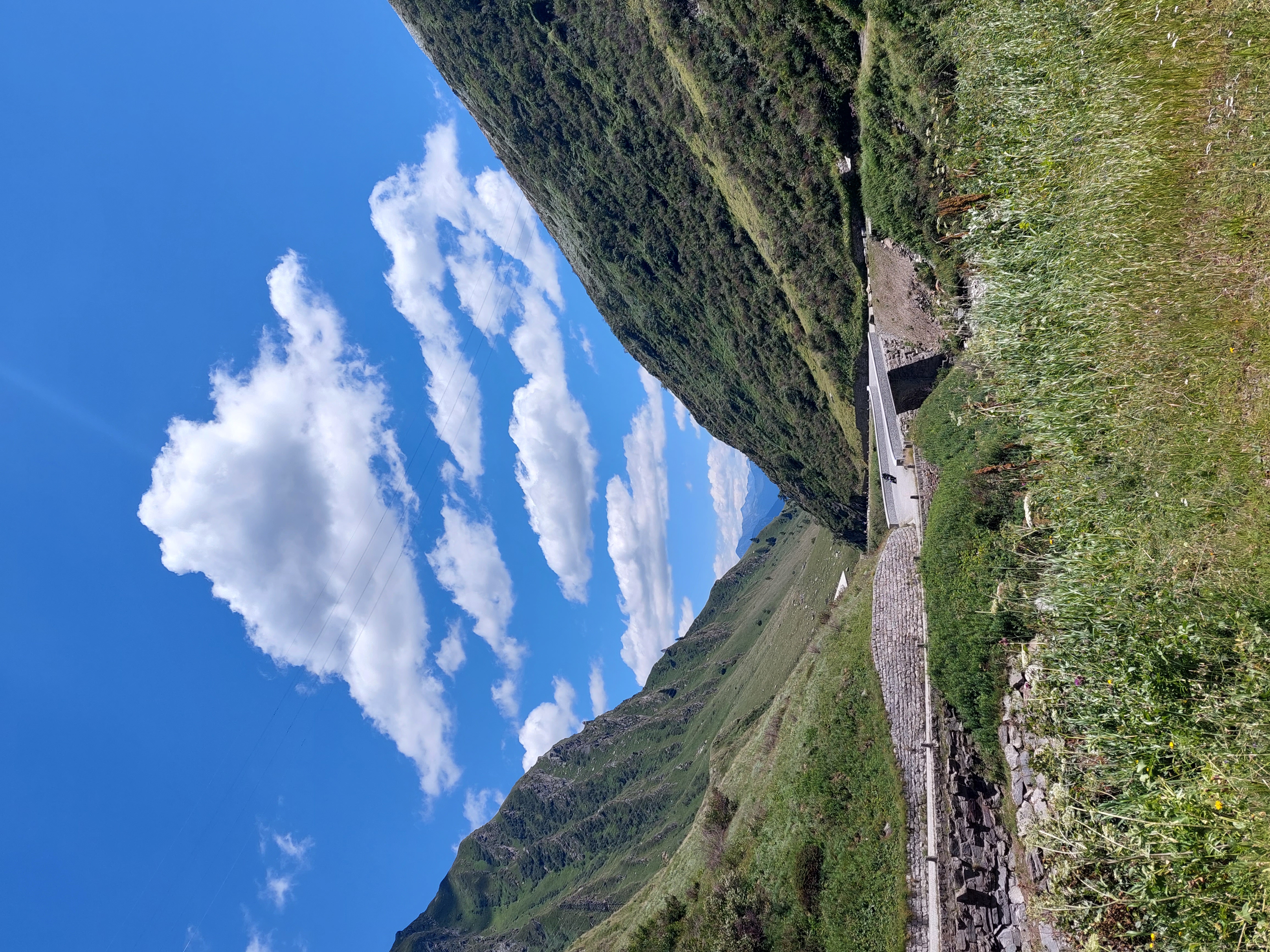 Wir starteten vom Gotthardpass Richtung Airolo. Zuerst ein kurzes Stück über die gepflasterte Tremolastrasse. Während diese dann langsam ihre Kurven zogen, führte der Wanderweg geradewegs gerade nach unten. Für mich und mein rechtes , bald 31- jähriges Knie war das keine sonderliche Freude (das andere ist relativ frisch renoviert, daher gings hier). Landschaftlich aber top. Einmal entschieden wir uns aber ein Stück der Strasse entlang zu laufen, einfach weil der Abstieg wirklich relativ steil ist (Stöcke sind definitiv empfohlen!)