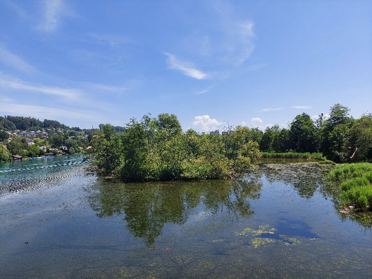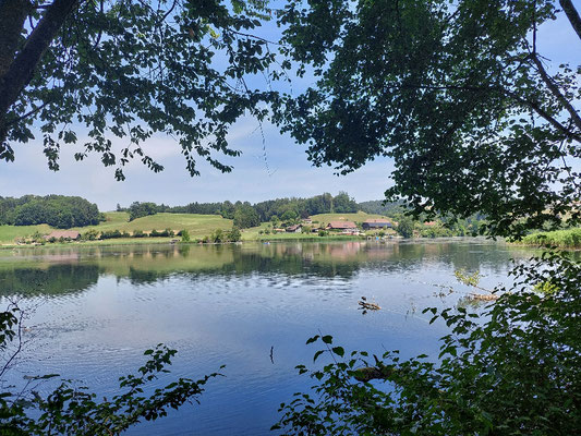 Ich startete in Frauenkappelen Richtung Wohlen. Schon bald kam ich wieder ans Ufer des Wohlensees. Die erste Strecke führte mich am Ufer entlang, schön am Schatten. Bald überquerte ich die Wohlei, einen gut erhaltenen Weiler. Das dortige "Strandbad" war bereits ordentlich gefüllt und ich hätte glaub auch nichts gegen einen Sprung ins kühle Nass gehabt.
