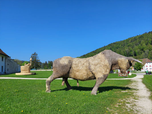 Kurz vor Bellelay sah ich einen Waldweg und viiiiele Kühe. Ich dachte mir noch "zum Glück muss ich da nicht durch". In Bellelay startet die Route direkt beim Maison de la Tête de Moine, denn da kommt auch der gleichnamige Käse her.